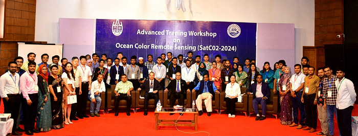 Later, the two sides jointly held an Advanced Training Course on Ocean Color Remote Sensing (SatCO2-2024), which attracted researchers, professors, and students from Chittagong University and other research institutions in Bangladesh. The training focused on marine ecological remote sensing and in-situ observation technologies, and introduced practical experience in remote sensing tools and data analysis techniques to the participants. Through lectures delivered by researchers including Researcher He Xianqiang, Researcher Bai Yan, Researcher Mao Zhihua, Senior Engineer Ran Lihua, and Associate Researcher Li Teng, the participants improved their knowledge in marine ecological environment, coastal water quality, marine carbon flux, remote sensing application systems, and in-situ observation technologies, which promoted cooperation between our institute and local research institutions and universities in Bangladesh. At the conclusion of the training course, Deputy Director Mei Xianjun and other representatives from the Second Institute of Oceanography, together with the university, presented certificates to the participants.
